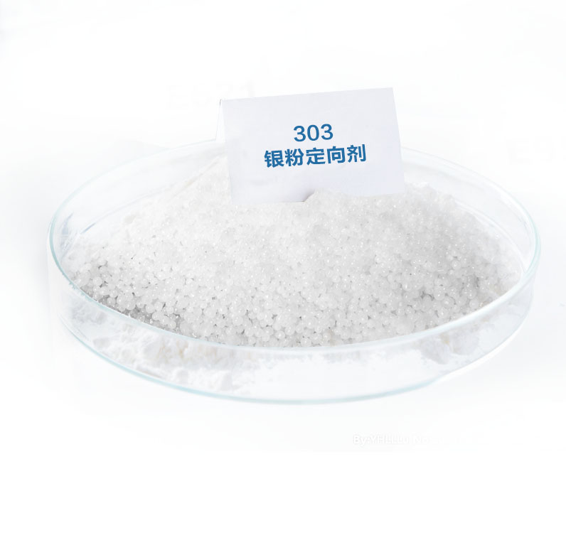 303銀粉定向劑主要是用于增加粉末涂層光滑性,改善鋁銀粉的定向排列性、潤滑性和松散程度。它能在粉末表面附上一層光亮的膜,從而大大增加了涂膜的白度及金屬感,將光澤提高到150以上。本產品通用性較廣,適用于外加的金屬粉末,如鋁銀粉,銅金粉,珠光顏料等。