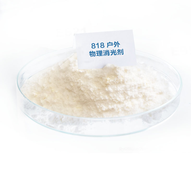 818是一種低蠟含量、基于樹脂的添加型消光劑,用于TGIC體系,加量3-6%可以提供光澤15-30%的戶外消光粉。相比其它同類產品其特點為:1、光澤更低,適合戶外15-30%的消光。2、低蠟含量,適合黑色體系。3、穩定性好,過烘烤條件下光澤、顏色變化小。