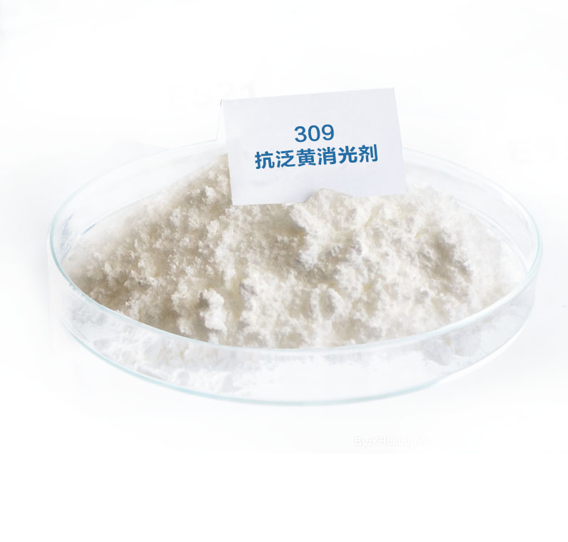 309是一種基于樹脂并與環氧部份固化的新一代抗黃消光劑,其與環氧固化比例約為環氧/308=2-2.5/1,用于環氧聚脂混合型粉末涂料,可提供光澤3%以上的消光。相比傳統的戶內抗黃消光劑。