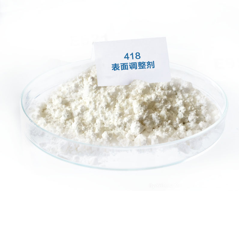 418表面調整劑 ,是一種離分子合成物,能有效的改善粉末表面的飽和度,促進流平,提高顏料的分散性,從而提高粉末的質量,降低粉末的成本。