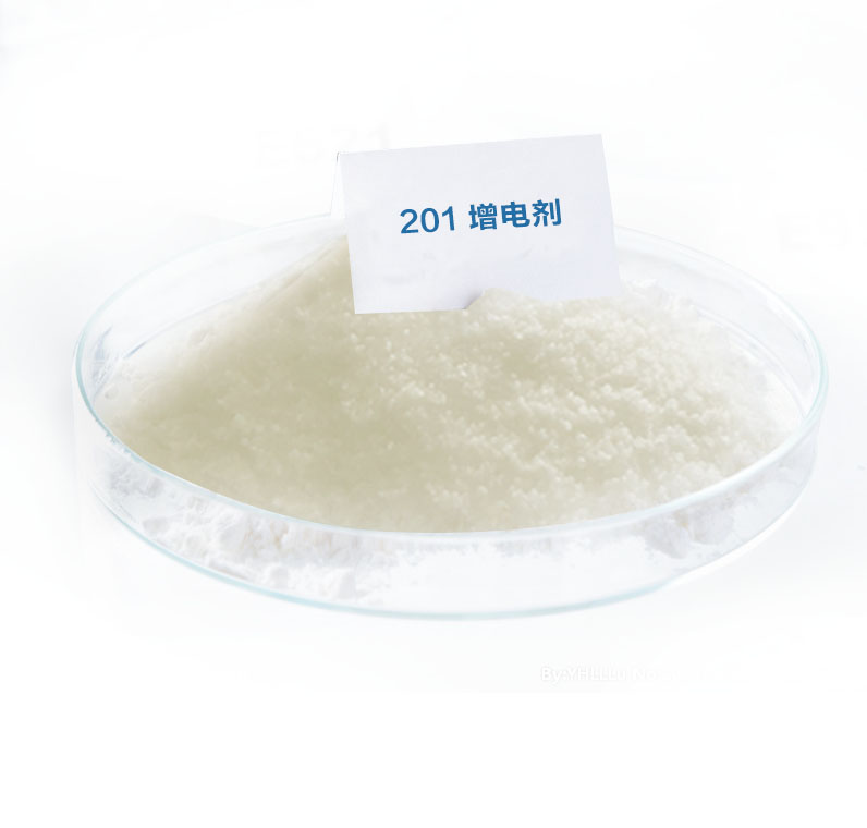 201增電劑為帶電基團的銨鹽它能有效提高噴涂時粉末粒子的帶電量,從而提高上粉,在噴涂時能有效的將表面的電荷及時泄漏掉,從而克服了靜電屏蔽效應,使邊角或內表面易上粉。本產品經權威實驗測定可提高8-25%的上粉率,對砂紋皺紋等樹脂份較低的品種特別有效,還能有效的減少銀粉的用量。