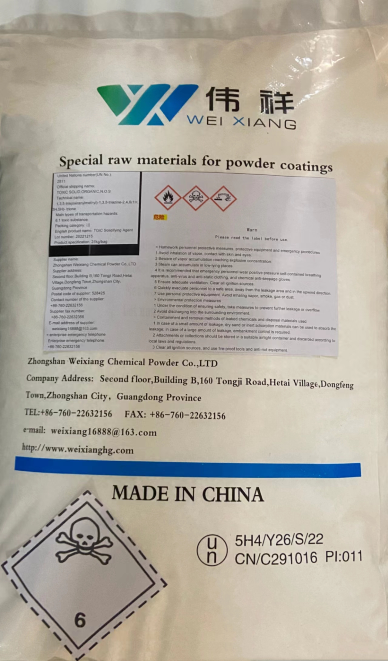 包裝:復合牛皮紙袋包裝,凈重: 25kg/袋。儲存方式:保持干燥,遠離高溫和火源。